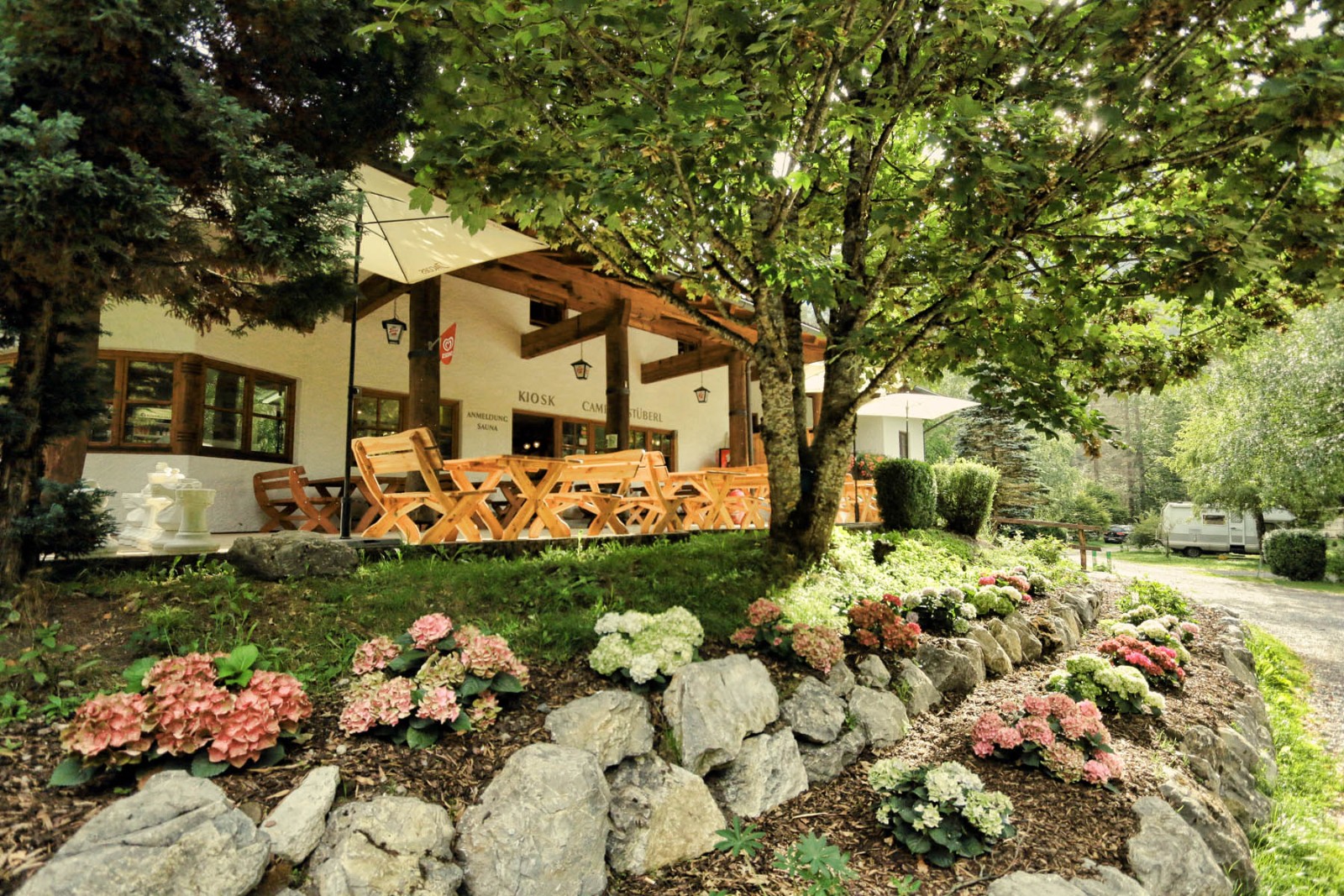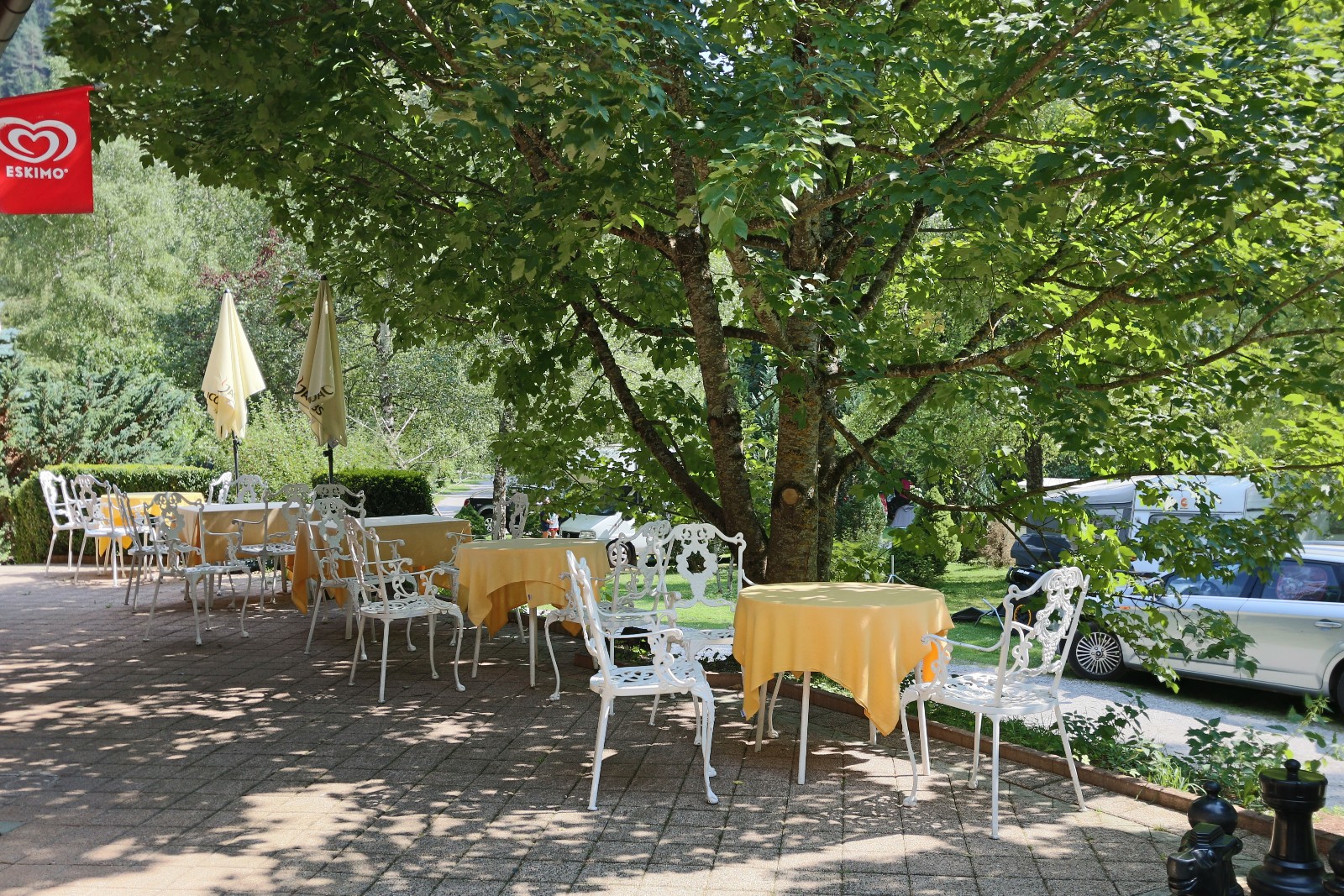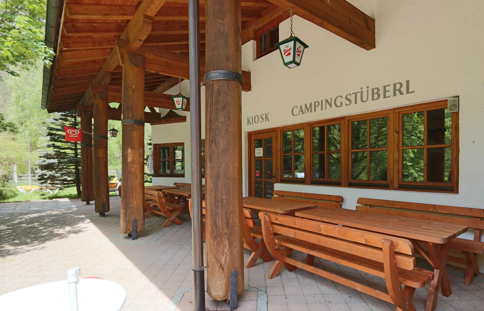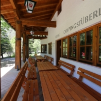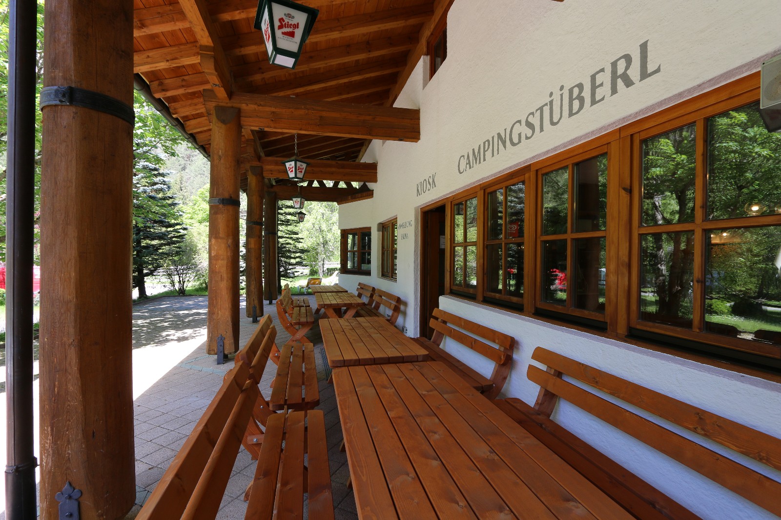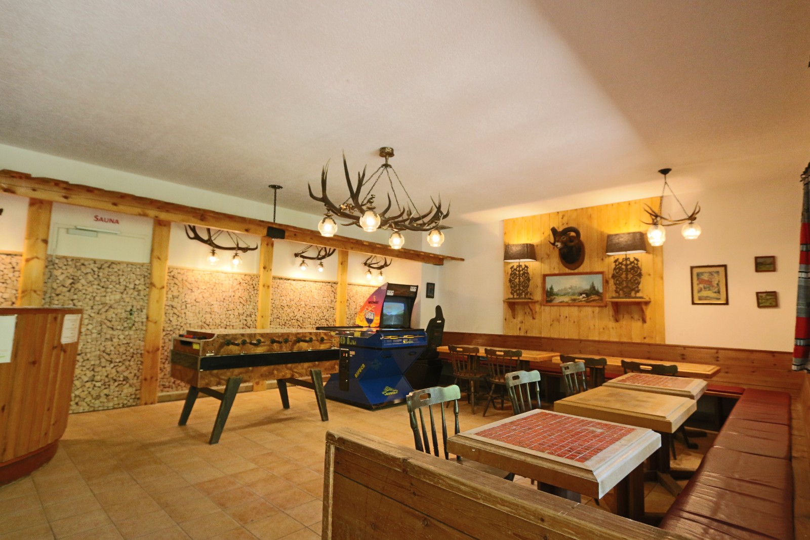 Gemütlicher Aufenthaltsraum mit gratis Wlan, TV, Minimarkt und Spielgeräten. Die großzügige Terrasse, teils überdacht ladet zum Verweilen ein.