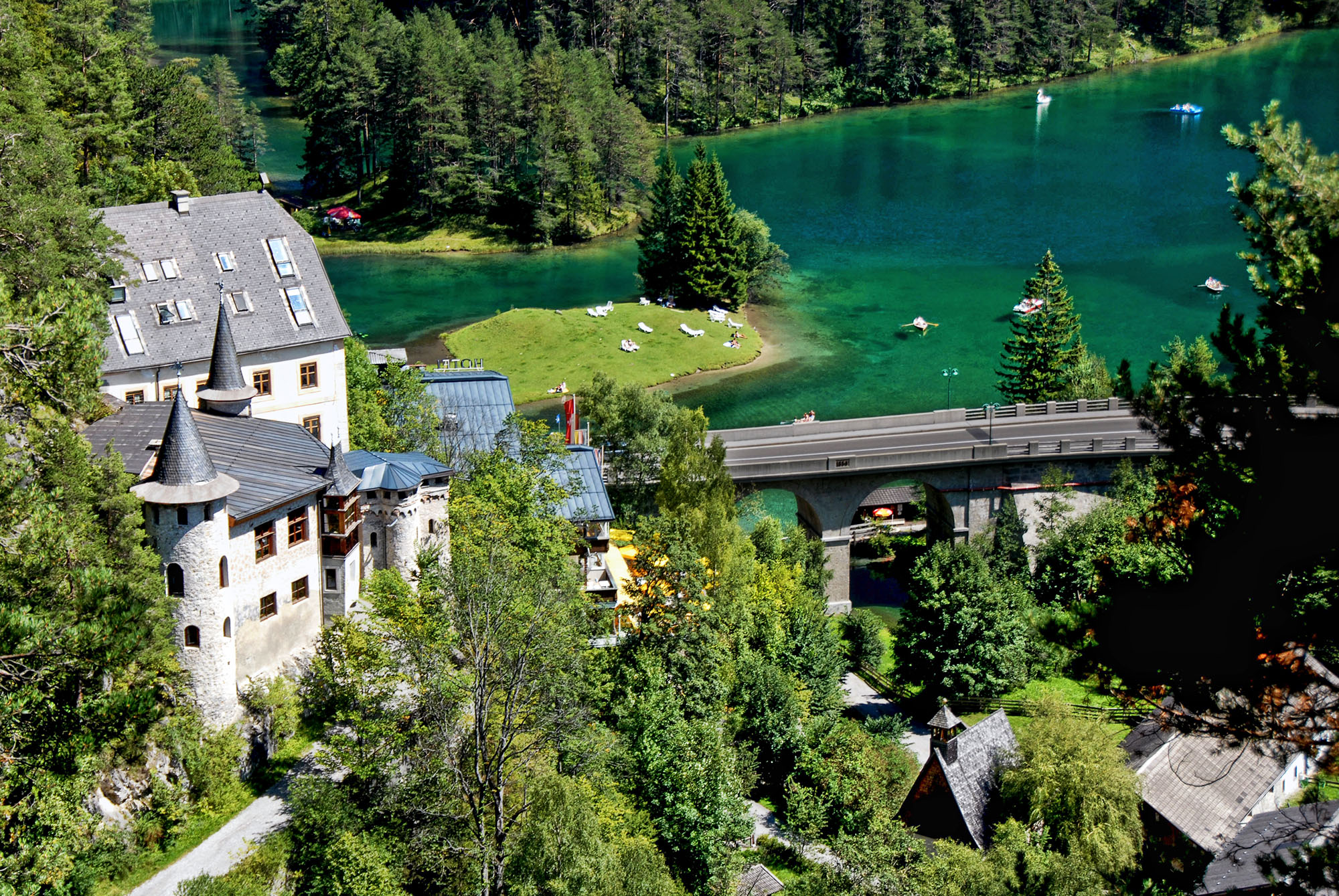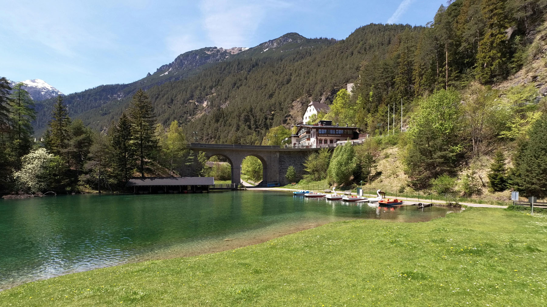 Fernsteinsee – ein Platz, wo Körper, Geist und Seele sich rundum erholen können. Wo die reine Bergluft die Lebensgeister wieder weckt. Wo die Lust an der Bewegung in frischer Luft in einer Umgebung mit kristallklaren Seen von ganz allein kommt. Das Resort umfasst ein riesiges Areal von 280.000 m² mit unverdorbener Natur und drei Seen das ihnen zu ihrer Regeneration zur Verfügung steht. Sie wandern und spazieren um die Seen, entdecken auf einer Insel eine alte Burg und werden in eine Zeit versetzt in der die Natur noch in Ordnung war. Ihnen steht eine reichhaltige Palette von Möglichkeiten von Aktivitäten zur Entspannung und zum Sport zur Verfügung.