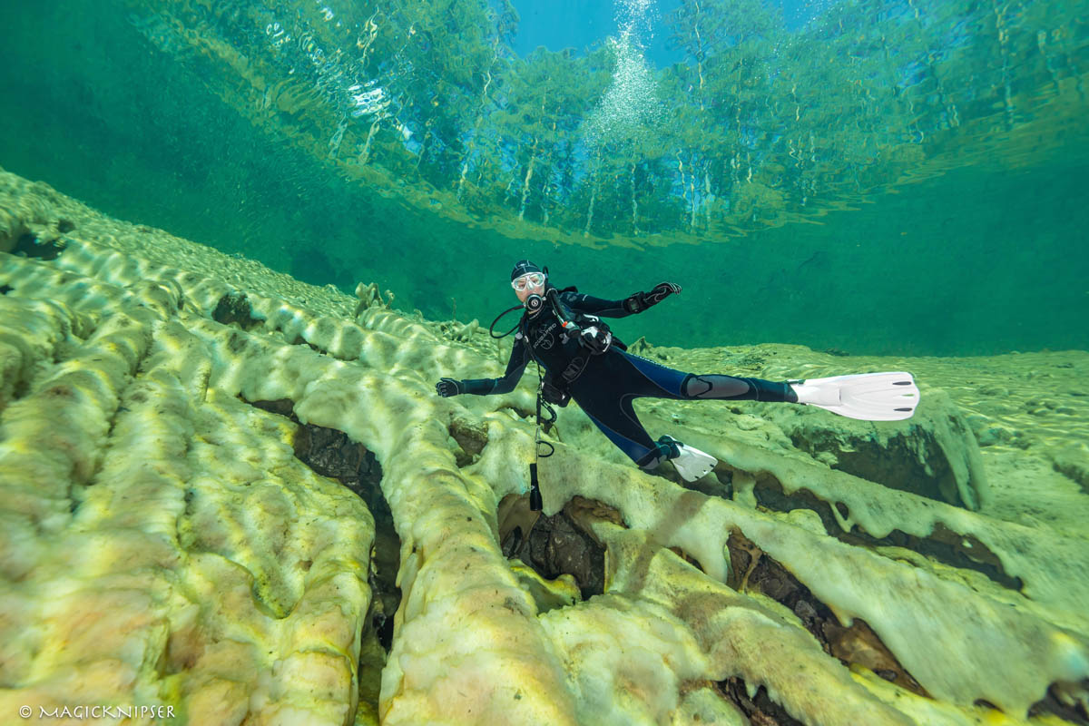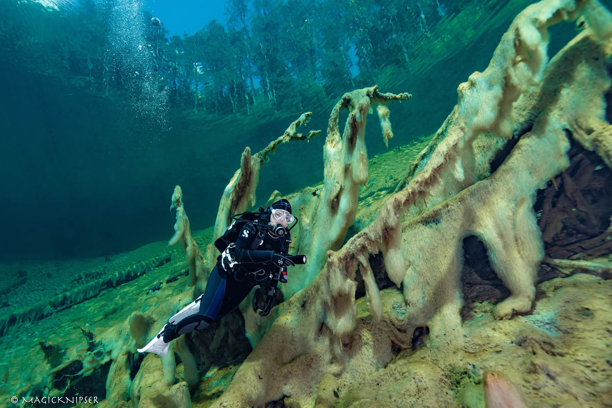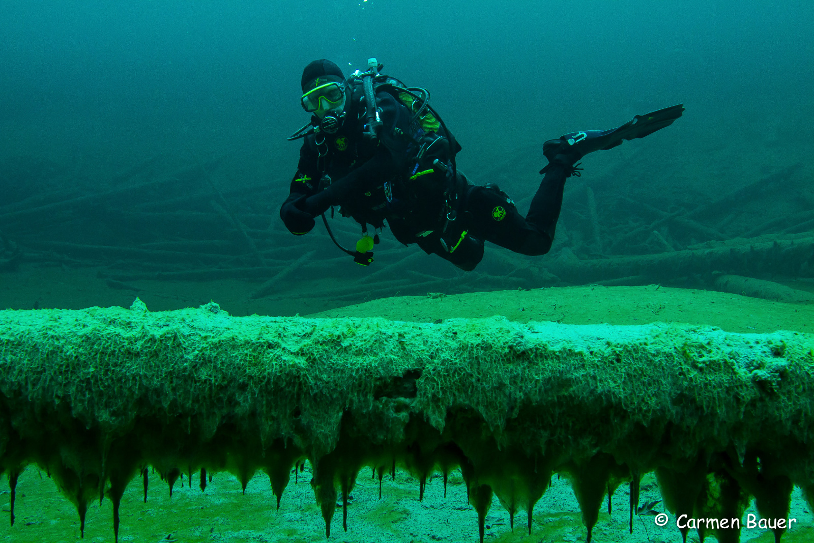Wir wurden von namhaften Biologen, die in unseren Seen Untersuchungen durchführten, darauf aufmerksam gemacht, dass bei nicht fachgerechtem Tauchen, Sedimente aufgewirbelt werden, die sich auf der Unterwasserflora ablegen. Dadurch bekommen diese Pflanzen zuwenig UV-Strahlung und sterben ab. Bedingt durch die große Kälte des Wassers, dauert es Jahrzehnte, bis sich die Pflanzen wieder regenerieren und nachwachsen können. Aufgrund der Aussagen dieser Fachleute, sind wir genötigt, mehr auf die Qualifikation unserer Taucher zu achten. (Von den Biologen wurde eine noch strengere Handhabung gewünscht!). Näheres dazu entnehmen Sie bitte unserer Tauchordnung.