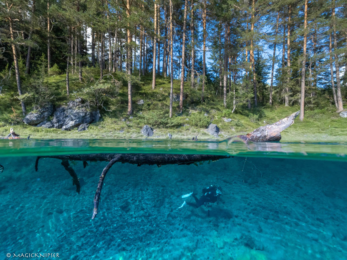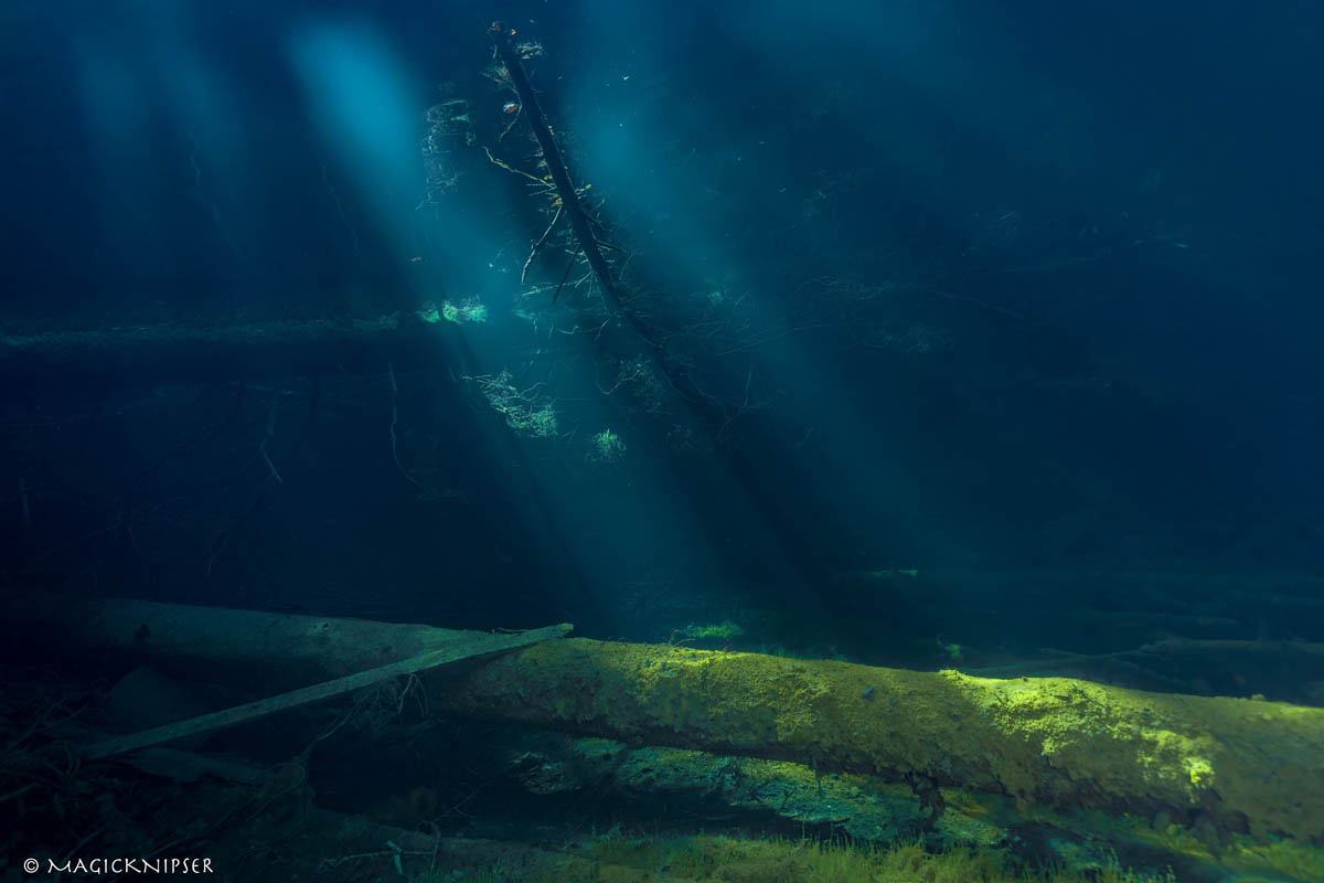 Im bis zu 17 m tiefen, meist kristallklaren Samaranger See liegen dicke Baumstämme kreuz und quer, fast wie ein riesiges Mikado-Spiel. Die von Schleimalgen überzogenen Bäume geben dem See etwas Märchenhaftes. Der Fernsteinsee glänzt mit guten Sichtweiten, ist aber nicht ganz so kristallklar wie der Samaranger See. Forellen, Saiblinge und kleine Waller gibt es hier zu „entdecken“.